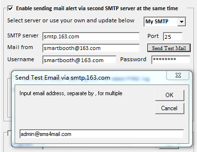 - Click "Send Test Mail" 后输入接收的邮箱地址